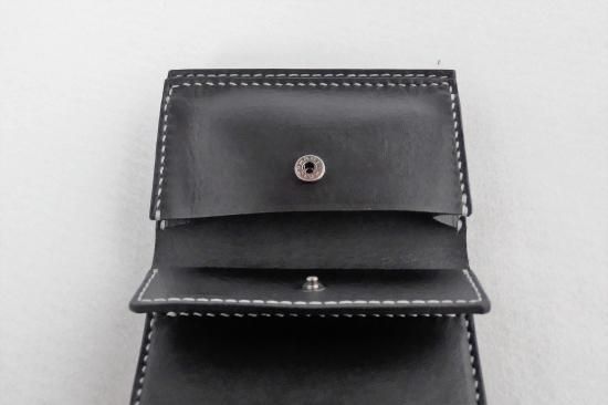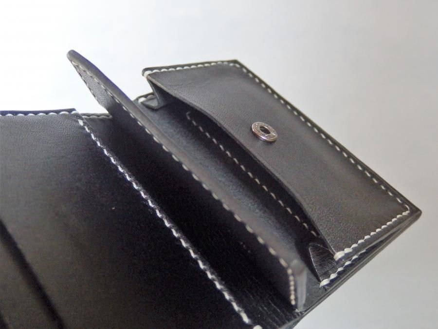 黒のピアノレザーと白ステッチの、シンプルな組み合わせです。